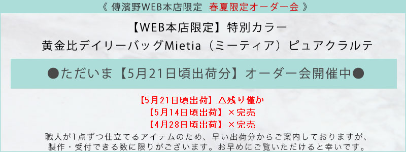 【傳濱野】≪WEB本店限定カラー≫皇室御用達 日本女性が輝く黄金比デイリーバッグ Mietia(ミーティア)限定色 Pure clarte(ピュアクラルテ) お仕事 肩にかかる