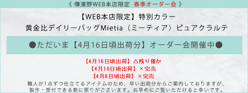 【傳濱野】≪WEB本店限定カラー≫皇室御用達 日本女性が輝く黄金比デイリーバッグ Mietia(ミーティア)限定色 Pure clarte(ピュアクラルテ) お仕事 肩にかかる