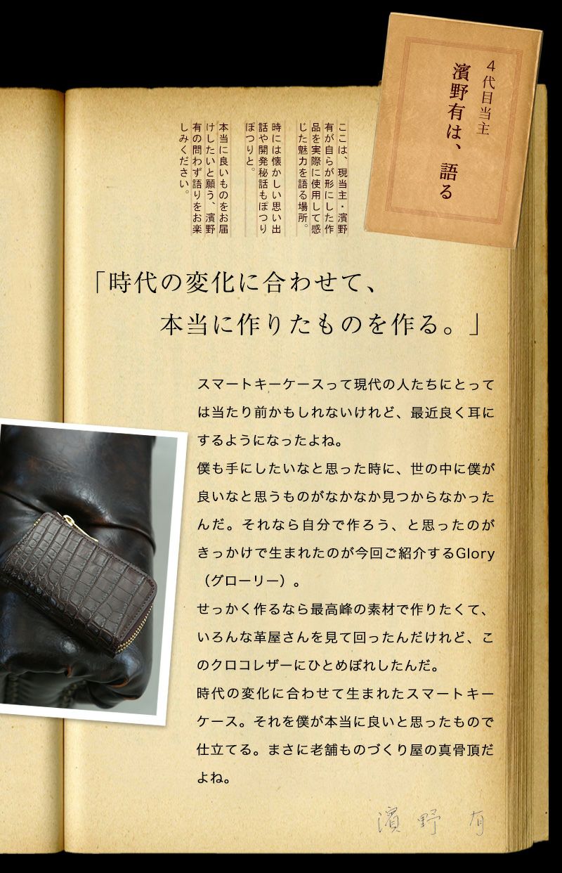 【傳濱野】≪メンズ≫愛車の鍵もエントランスキーもひとまとめに収容。濱野家のスマートキーケース最高峰リアルクロコダイルレザー版 Glory(グローリー)