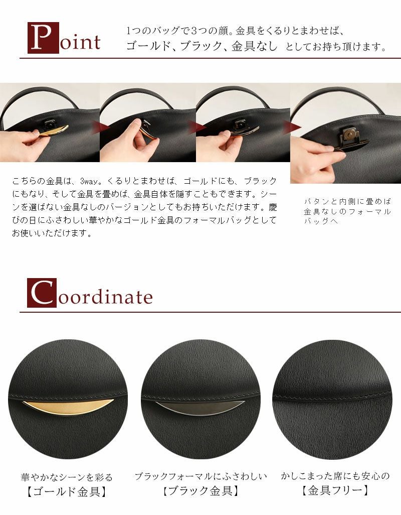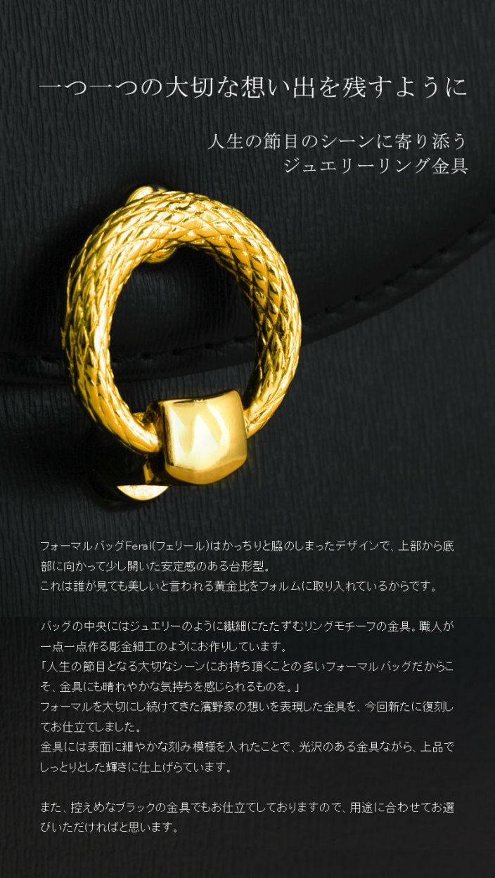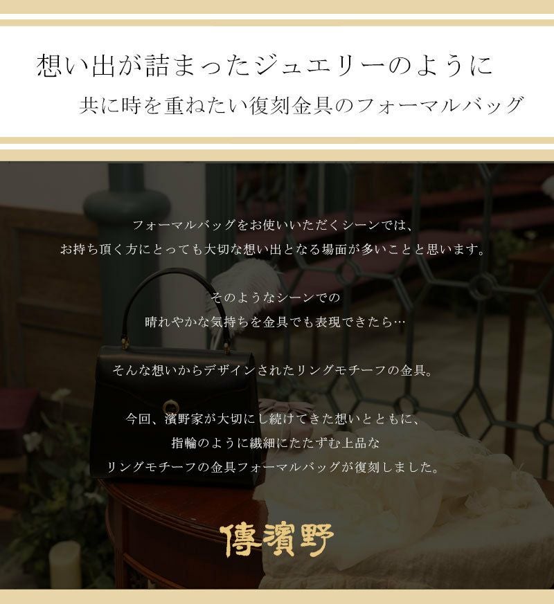 他の画像を見る 【傳濱野】想い出が詰まったジュエリーのように、共に時を重ねたい濱野家の復刻金具のフォーマルバッグ Fereal(フェリール) ブラックフォーマルバッグ 黒 セレモニーバッグ 結婚式 バッグ 卒業式バッグ 入学式バッグ 卒園式 バッグ 入園式バッグ [formal] 販売価格 ¥ 62,700 税込