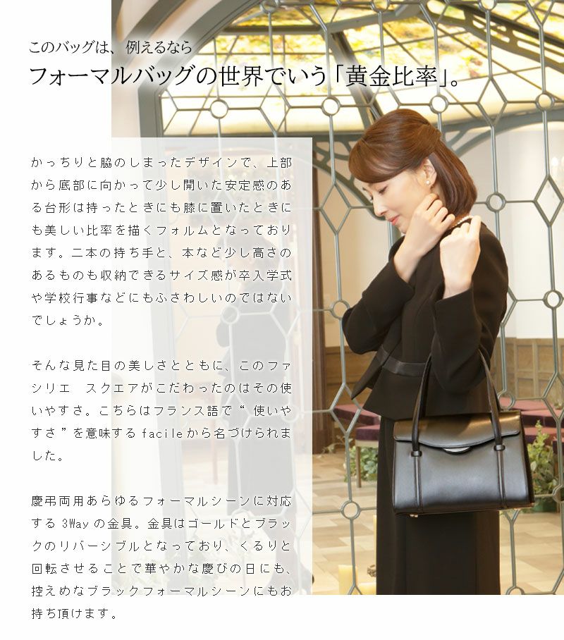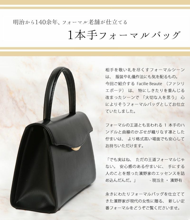 他の画像を見る 【傳濱野】皇室御用達 濱野家WEB限定 格式高いシーンにも安心1本手フォーマルバッグ ファシリエボーテ 慶弔両用 黒 3way金具 お受験バッグ 卒業式バッグ 入学式バッグ 卒園式バッグ 入園式バッグ ブラックフォーマルバッグ [formal] 販売価格 ¥ 61,600 税込