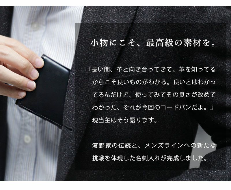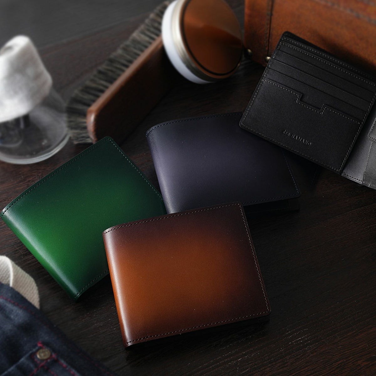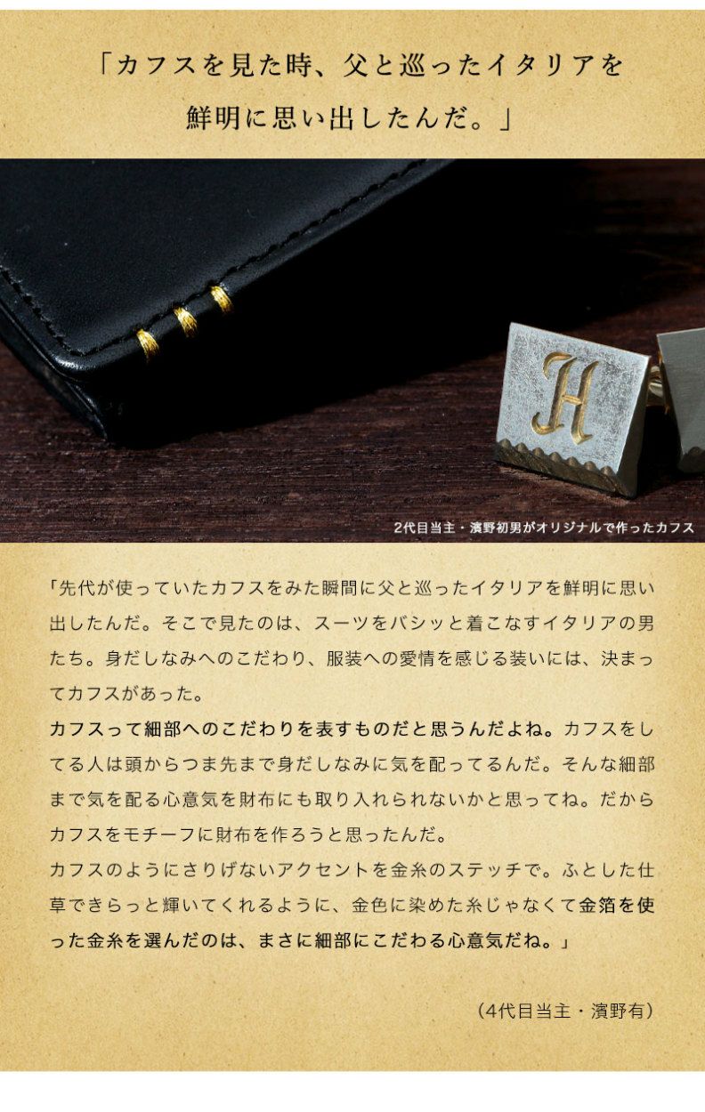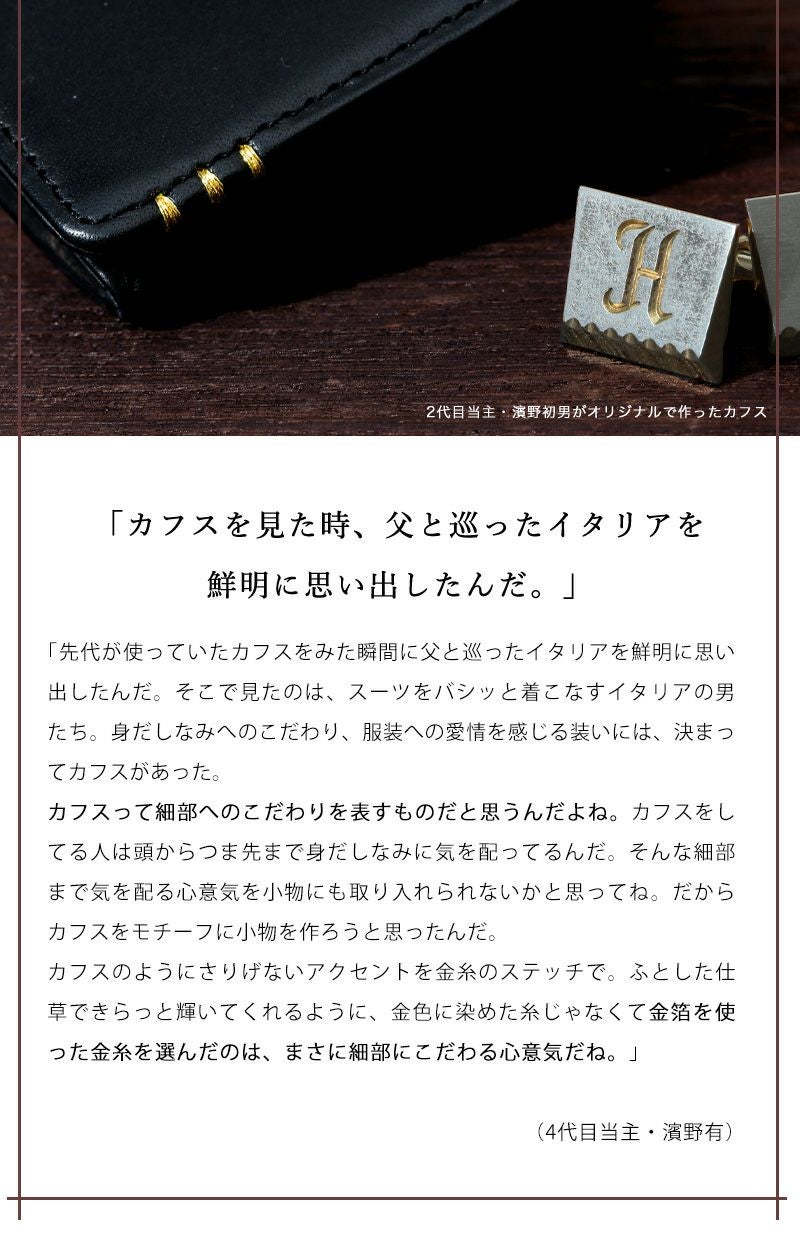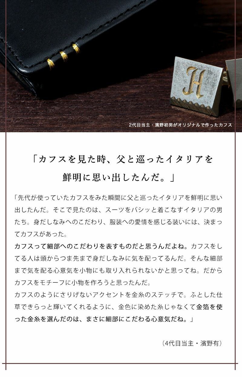 | 金箔のステッチが手元を飾る二つ折り財布 | 憧れを手にするコードバン長財布 | カフスがモチーフの“クラシコシリーズ”長財布 | ||