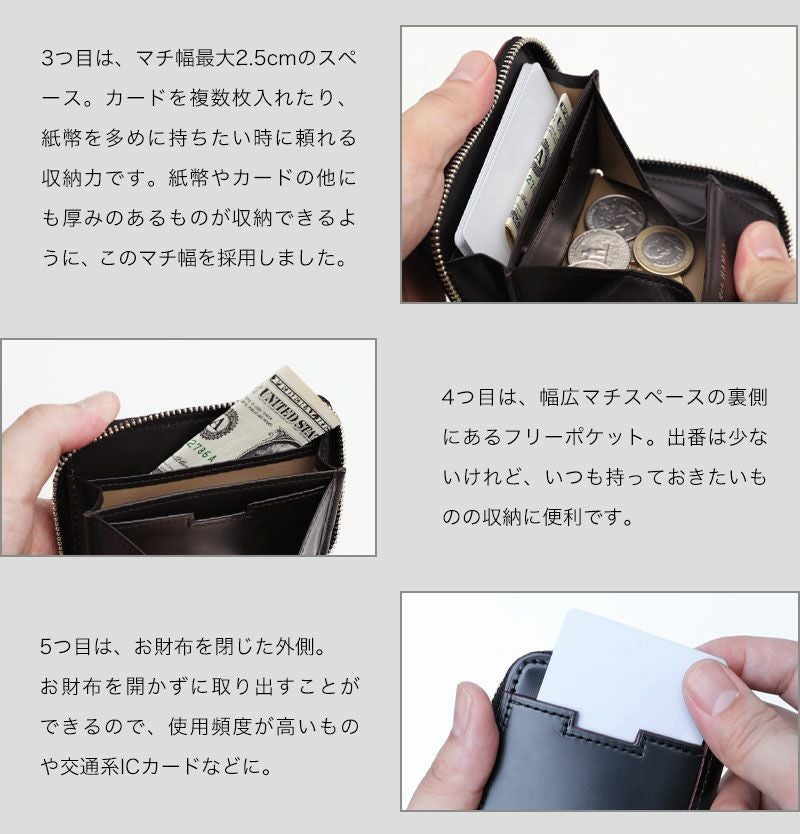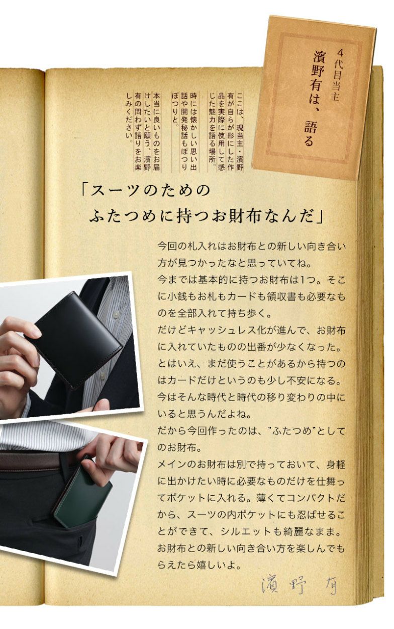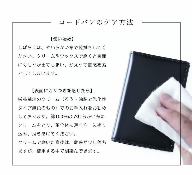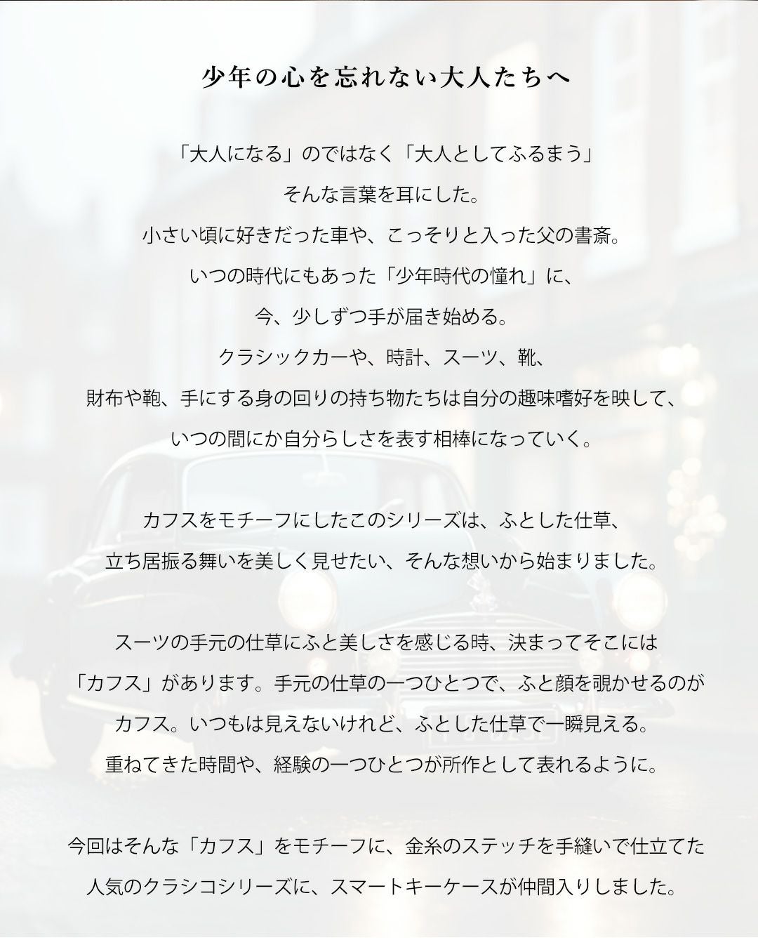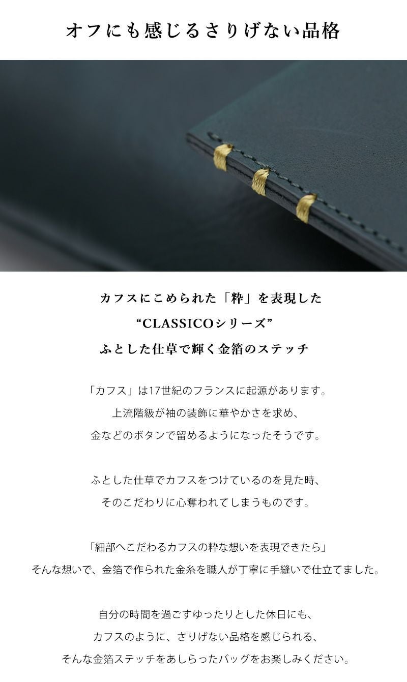 | 金箔のステッチが手元を飾る二つ折り財布 | 憧れを手にするコードバン長財布 | カフスがモチーフの“クラシコシリーズ”長財布 | ||