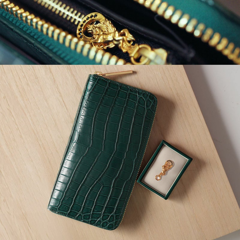 縁起を尽くしたオリジナル“験担ぎ”引手のクロコ長財布