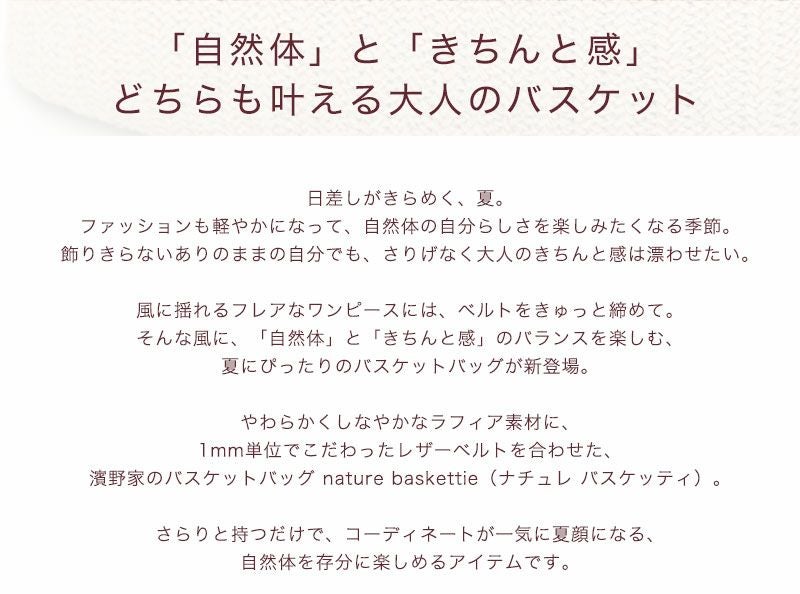 他の画像を見る 【傳濱野】《Summer》「自然体」と「きちんと感」を叶える濱野家のバスケット nature baskettie(ナチュレバスケッティ)肩にかかる 夏季限定 販売価格 ¥ 39,600 税込 在庫切れ