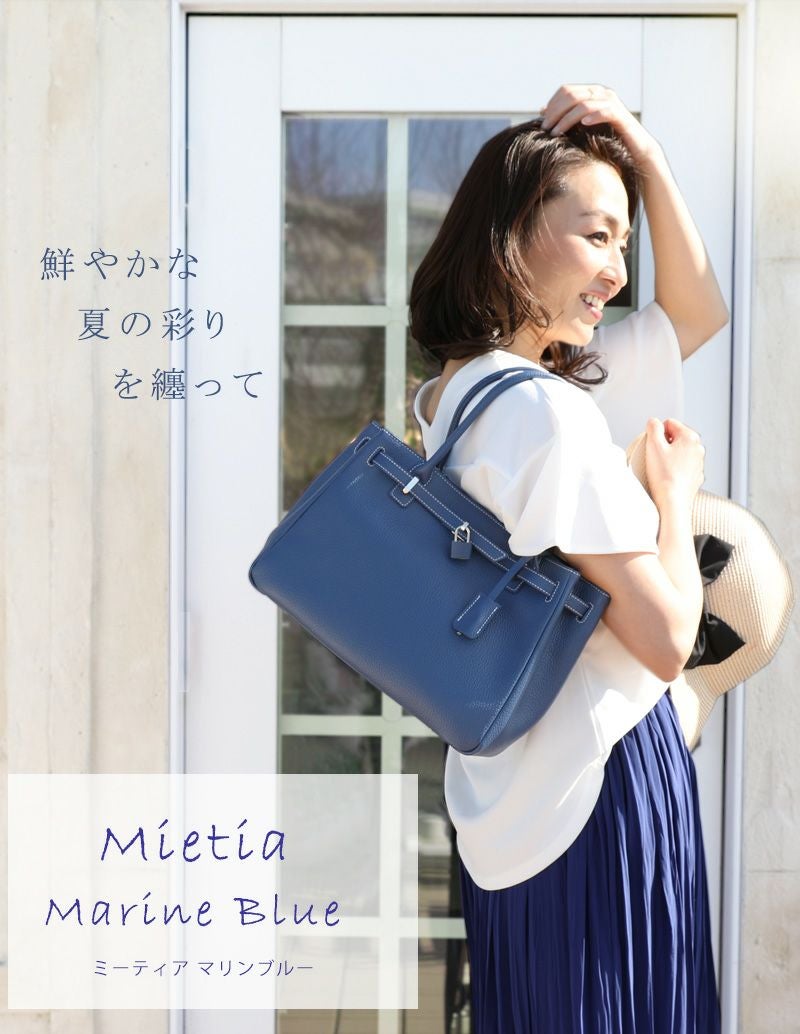 他の画像を見る 【傳濱野】≪夏季限定カラー≫皇室御用達 日本女性が輝く黄金比デイリーバッグMietia Marine Blue(ミーティアマリンブルー) ラウンド WEB限定色 お仕事 肩にかかる 販売価格 ¥ 45,100 税込