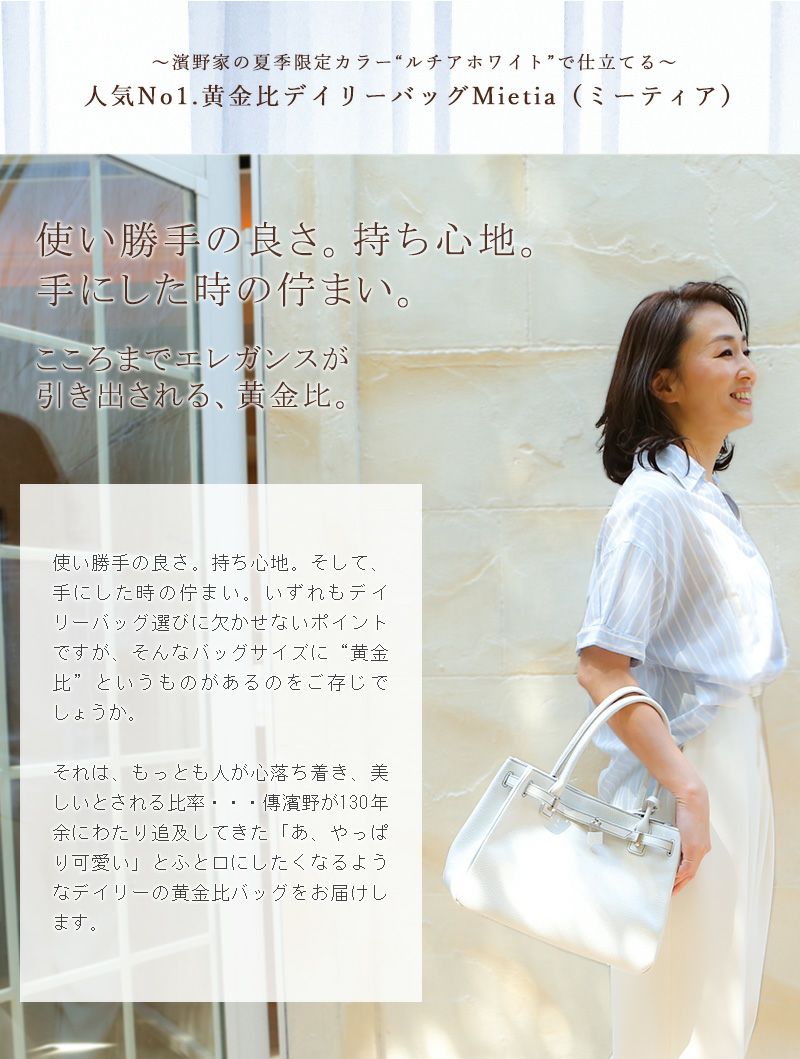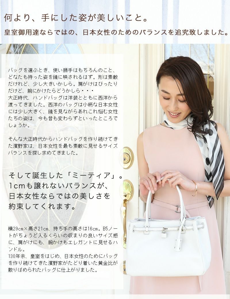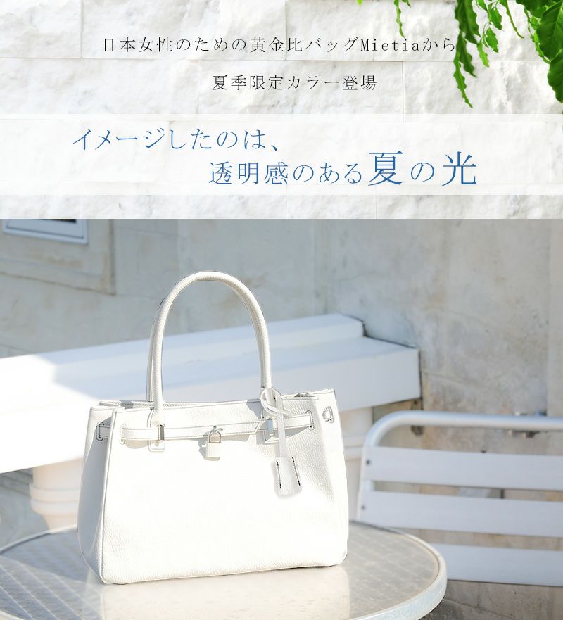 他の画像を見る 【傳濱野】≪夏季限定カラー≫皇室御用達 日本女性が輝く黄金比デイリーバッグMietia Lucia White(ミーティアルチアホワイト) ラウンド WEB限定色 お仕事 肩にかかる 販売価格 ¥ 45,100 税込