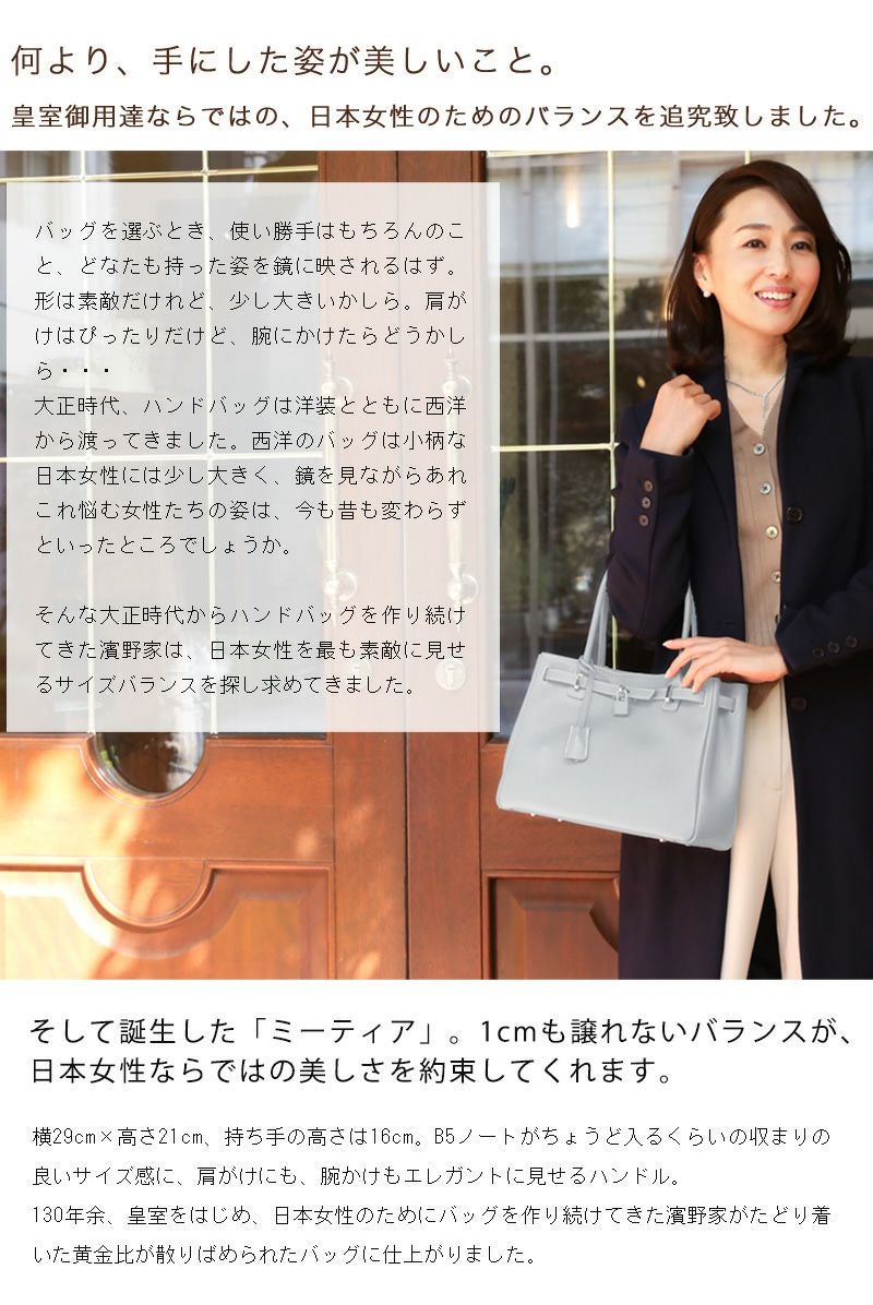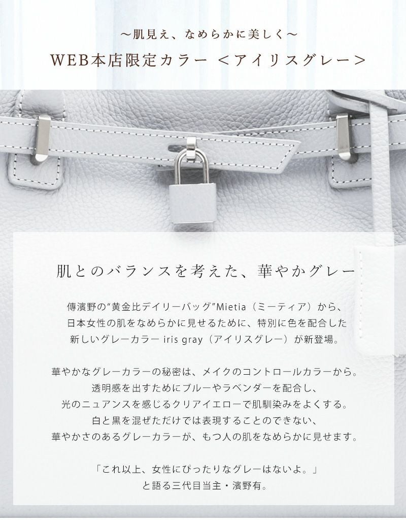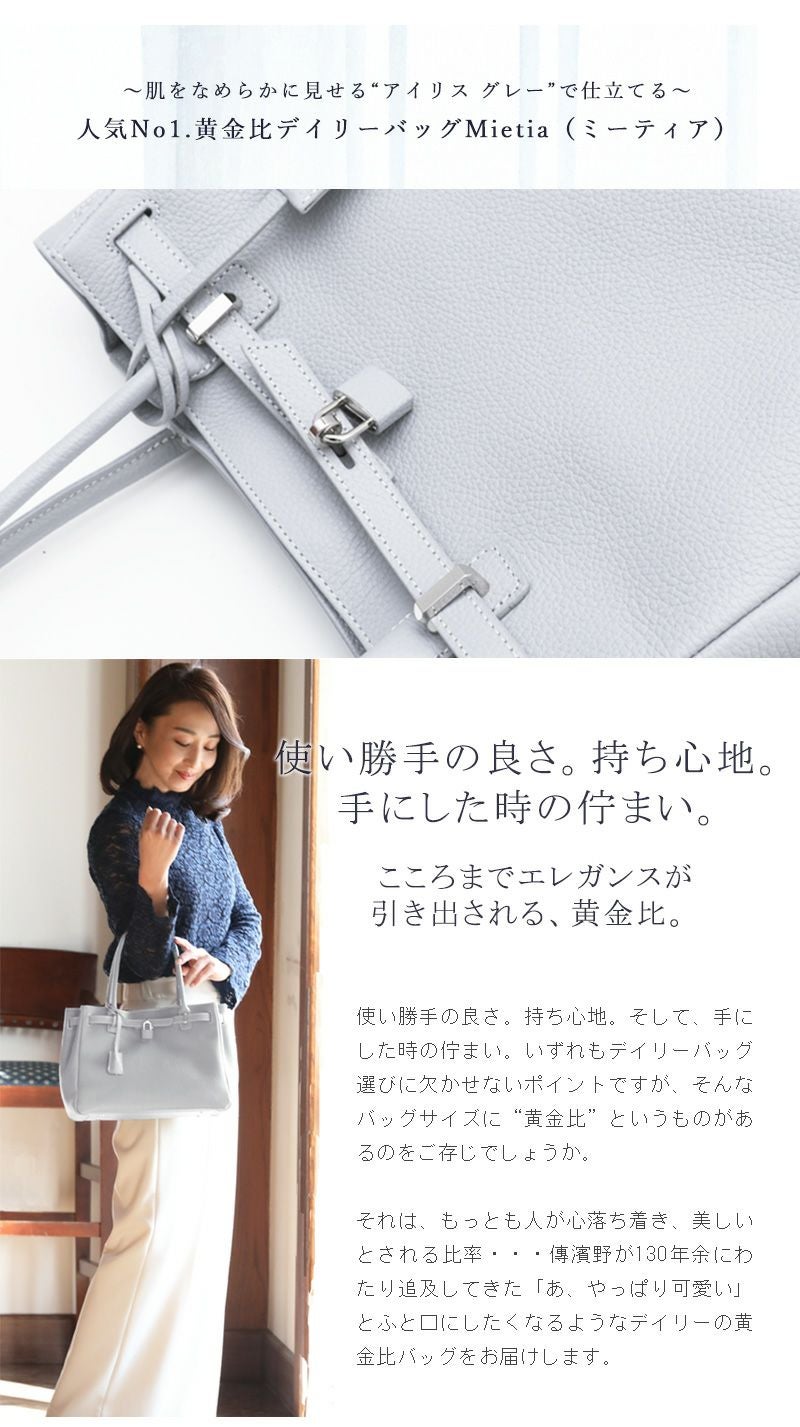 他の画像を見る 【傳濱野】≪WEB本店限定カラー≫皇室御用達 日本女性が輝く黄金比デイリーバッグMietia (ミーティア)特別色 Irisgray(アイリスグレー) お仕事 肩にかかる 販売価格 ¥ 45,100 税込