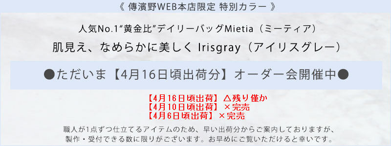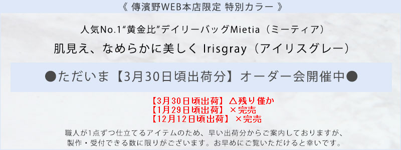 【傳濱野】≪WEB本店限定カラー≫皇室御用達 日本女性が輝く黄金比デイリーバッグMietia (ミーティア)特別色 Irisgray(アイリスグレー) お仕事 肩にかかる