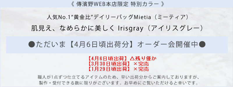 【傳濱野】≪WEB本店限定カラー≫皇室御用達 日本女性が輝く黄金比デイリーバッグMietia (ミーティア)特別色 Irisgray(アイリスグレー) お仕事 肩にかかる