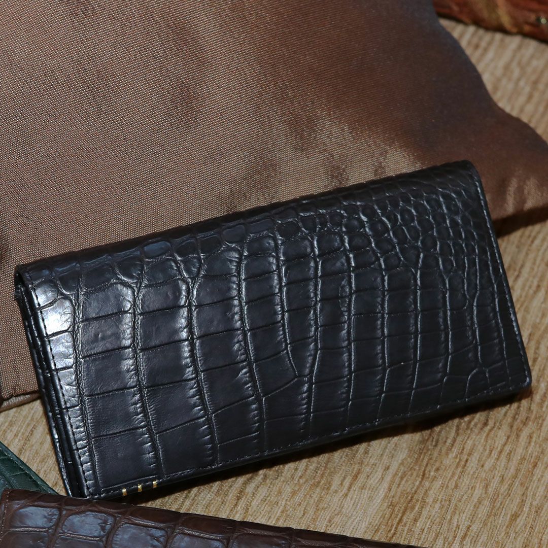 験担ぎ引手クロコ革長財布