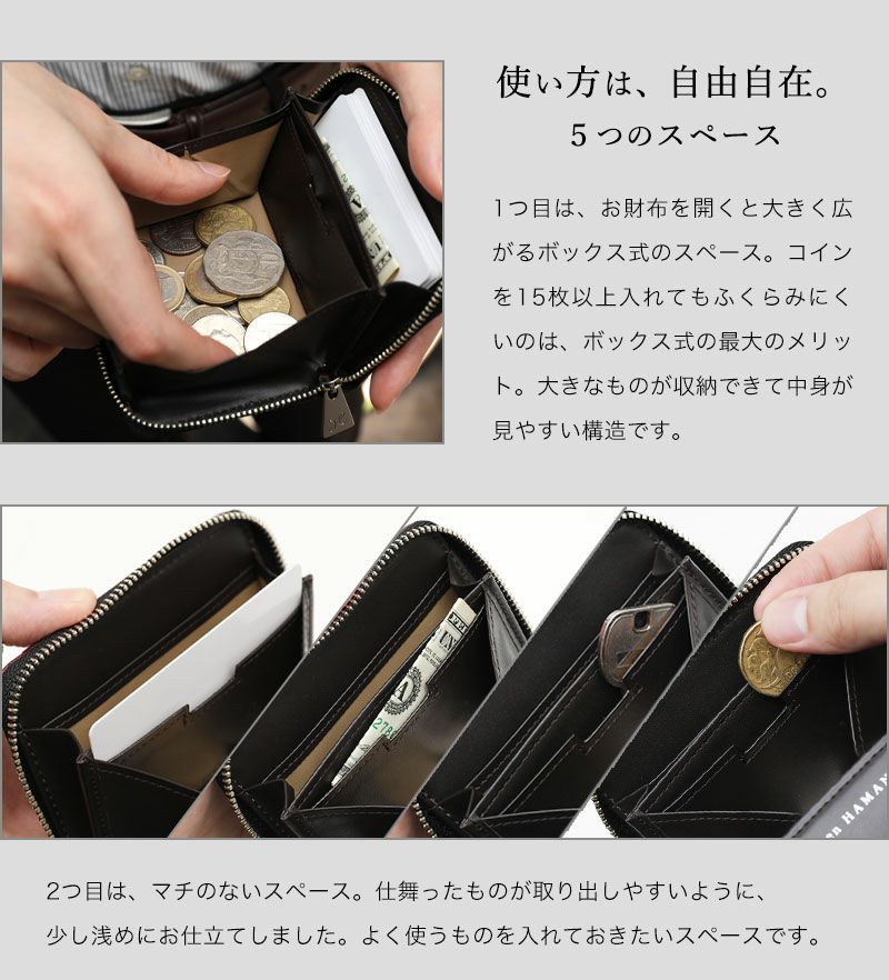 スマートな収納設計が、ふとした時に財布を取り出す動きも洗練されたものにしてくれます。