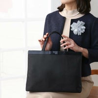 卒園式・入学式ともに和装で出席する予定だったため、サブバッグを探していました。 かしこまった場でエコバッグや紙袋は避けたい、どうせなら長く使えるものをと思い、いろいろと検討しました。 和装用のサブバッグは初めてだったので、着物の柄を隠さないよう横長のデザインを中心に探しましたが、オンラインでは生地が薄そうに見えたり、荷物を入れると形が崩れそうなものが多く、なかなか決めきれずにいました。 そんな中、以前から気になっていたこちらのバッグを思い出し、購入しました。 実際に使ってみると、生地に程よい張りがあり、型崩れしにくく安心感があります。上品で高級感のある質感も、式典の場にふさわしく感じました。スリッパ・ポーチ・小ぶりの水筒を入れても、A4サイズの資料がスムーズに出し入れでき、慌ただしい場面でもとても使いやすかったです。見た目以上の収納力に満足しています。 オンラインショップでは洋装での使用例が中心でしたが、和装にも違和感なく合わせることができました。 和装・洋装どちらにも使えるサブバッグとして、とても重宝すると思います。 サブバッグとして購入しましたが、今後は授業参観などの学校行事でも活躍しそうです。
