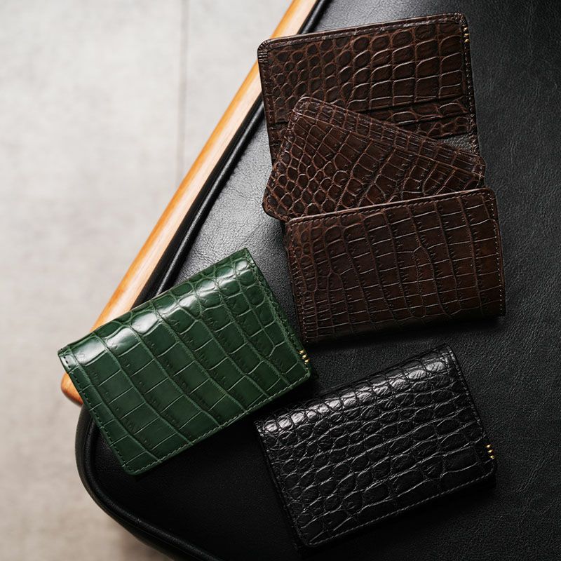 主人へのお誕生日プレゼントにしました。クロコは高級感がありお色も綺麗なグリーンに金糸がきいていてとても素敵でした。主人もとても気に入ったようで、早速使っています。私も今までにバッグを三ついただいていますが、濱野さんにはいつも間違いがないです。 -