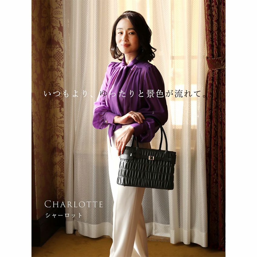 他の画像を見る 【傳濱野】燕子花(かきつばた)の凛と優美に咲く姿をイメージした、4本手ハンドバッグLydia(リディア) 販売価格 ¥ 47,300 税込 販売期間 〜 2026/03/31 12:00