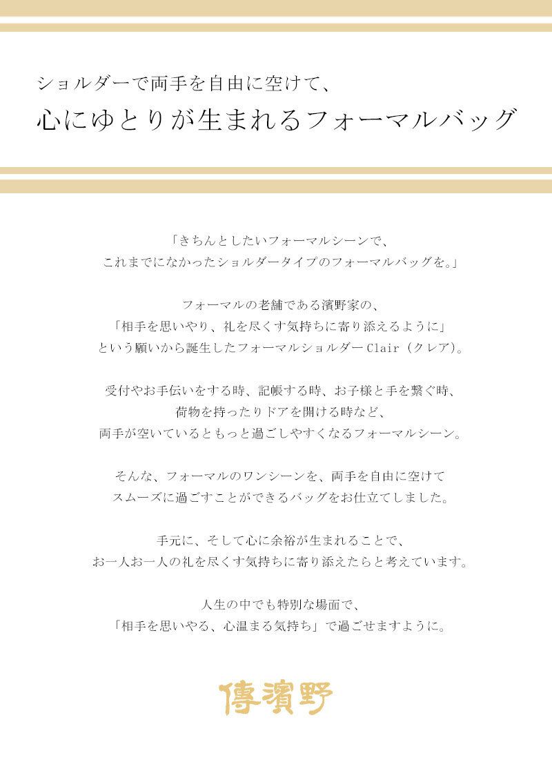 他の画像を見る 【傳濱野】皇室御用達 濱野家WEB限定 格式高いシーンにも安心1本手フォーマルバッグ ファシリエボーテ 慶弔両用 黒 3way金具 お受験バッグ 卒業式バッグ 入学式バッグ 卒園式バッグ 入園式バッグ ブラックフォーマルバッグ [formal] 販売価格 ¥ 61,600 税込