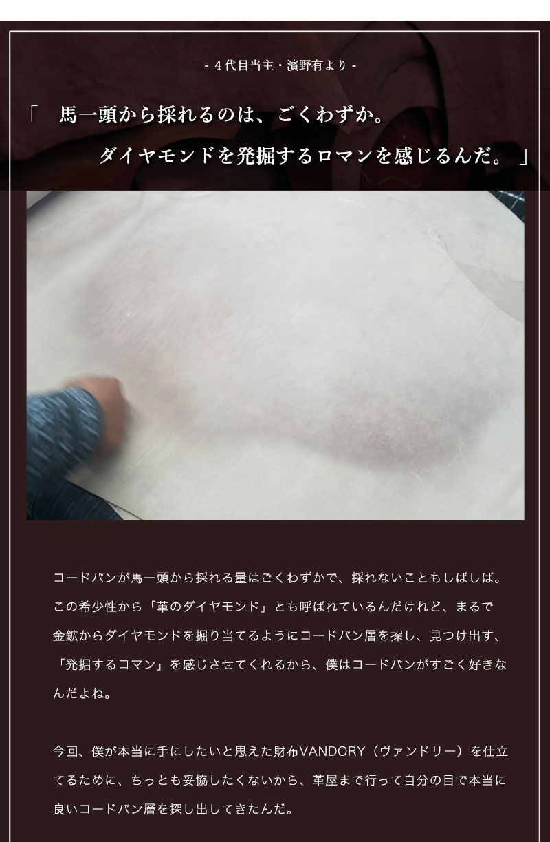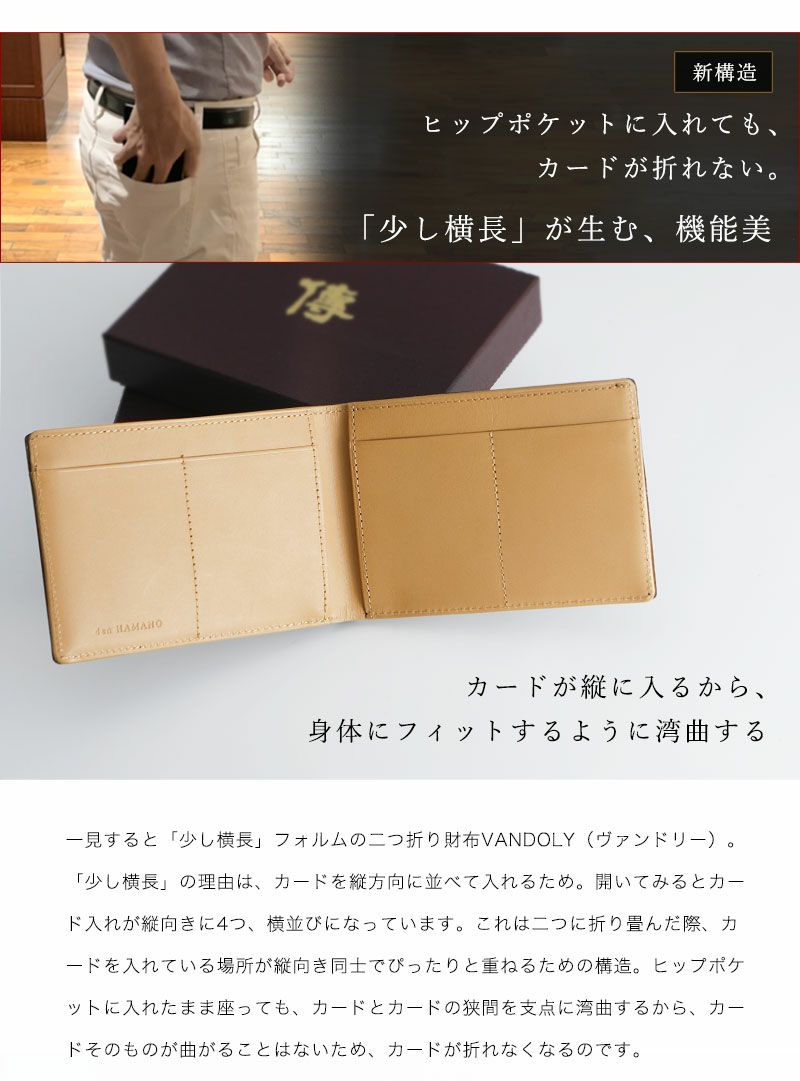 【傳濱野】≪メンズ≫濱野有が本当に作りたかった、カードが折れない薄いコードバン二つ折り財布VANDOLY(ヴァンドリー)