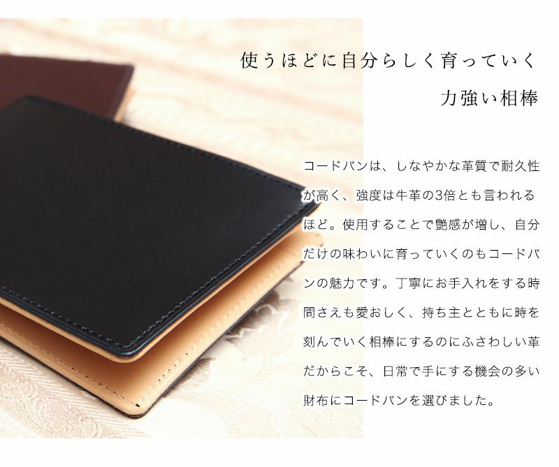 【傳濱野】≪メンズ≫一生モノの革の手帳のように、ともに時を刻むコードバン二つ折り財布RICORDO(リコルド)