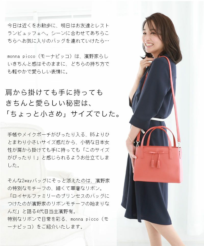 他の画像を見る 【傳濱野】《人気リボンシリーズ》 ちょっと小さいが愛らしい、濱野家の特別なリボンを添えた2wayミニバッグ monna picco(モーナピッコ)斜めがけ 販売価格 ¥ 39,600 税込