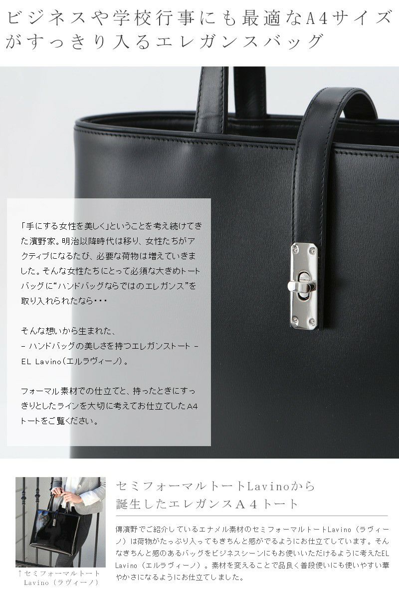 他の画像を見る 【傳濱野】皇室御用達 濱野家 学校行事やお受験に一つ欲しいA4トート EL Lavino(エルラヴィーノ) お仕事 A4 セミフォーマル [formal] 販売価格 ¥ 53,900 税込