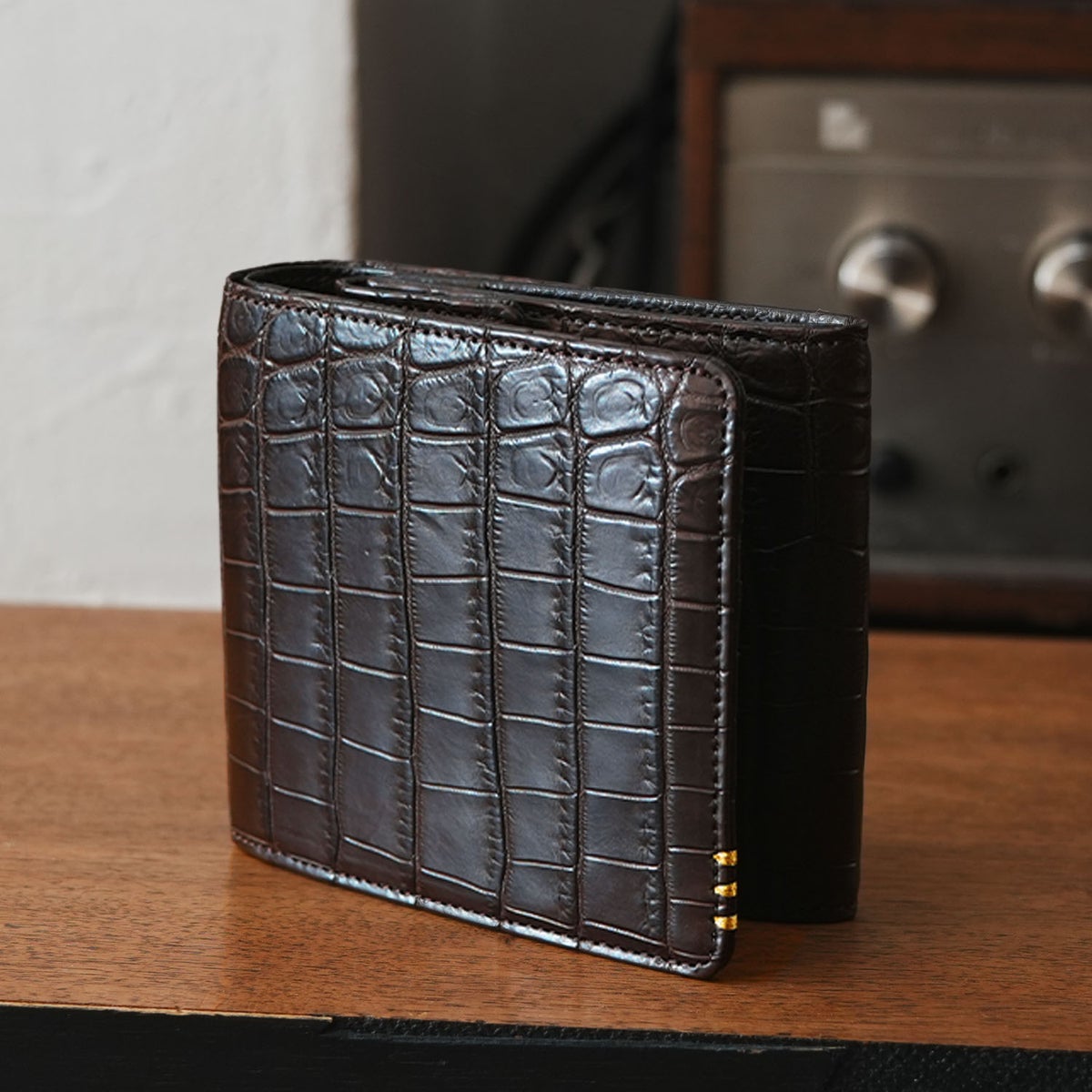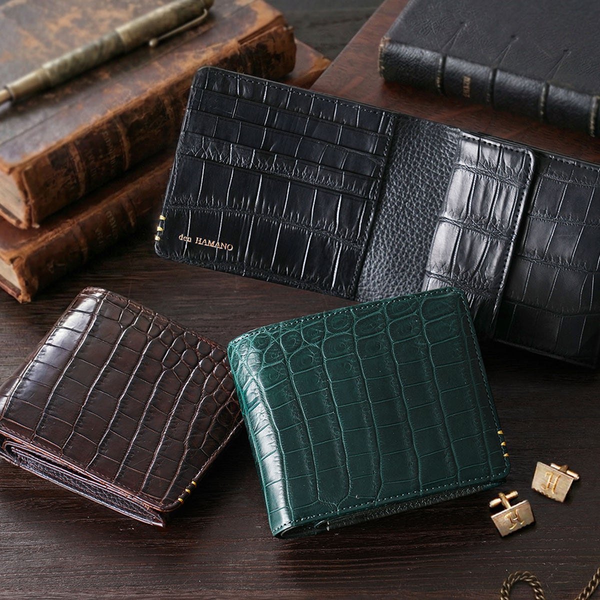 他の画像を見る 【傳濱野】≪メンズ≫金箔ステッチをあしらったクラシコシリーズからクロコ革で仕立てる最高峰二つ折り財布登場 EGARE REGALIA(エガーレレガリア) クロコダイル 販売価格 ¥ 69,300 税込