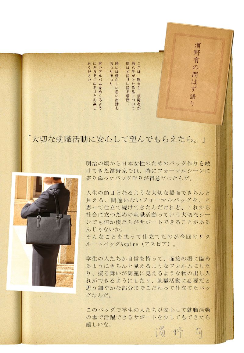 他の画像を見る 【傳濱野】皇室御用達 濱野家が仕立てる正統派リクルートバッグ Aspire(アスピア) 就活バッグ 就職活動用バッグ フレッシャーズバッグ 新卒バッグ 販売価格 ¥ 38,500 税込 在庫切れ