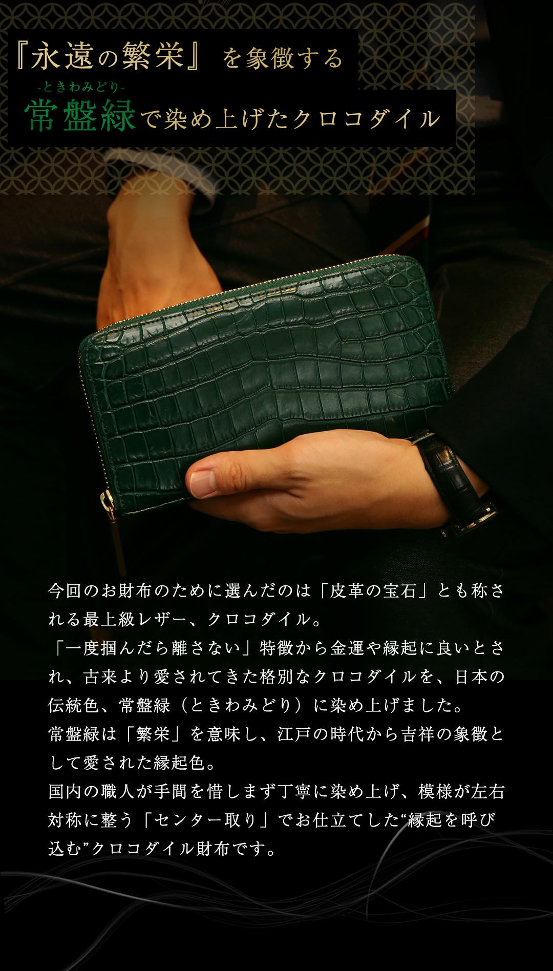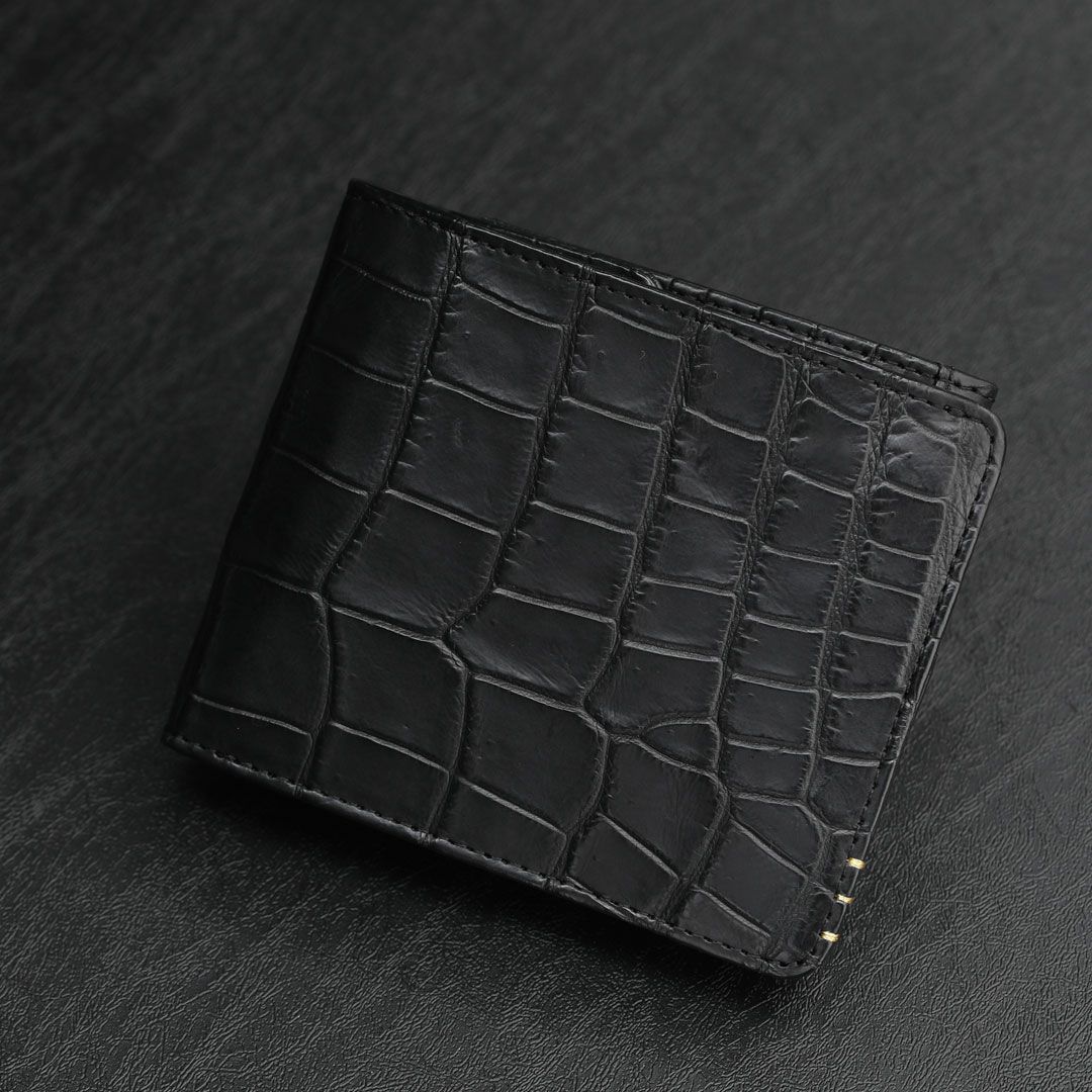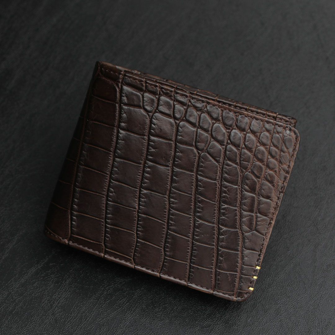 他の画像を見る 【傳濱野】≪メンズ≫金箔ステッチをあしらったクラシコシリーズからクロコ革で仕立てる最高峰二つ折り財布登場 EGARE CROCO(エガーレクロコ) クロコレザー 販売価格 ¥ 49,500 税込 在庫切れ