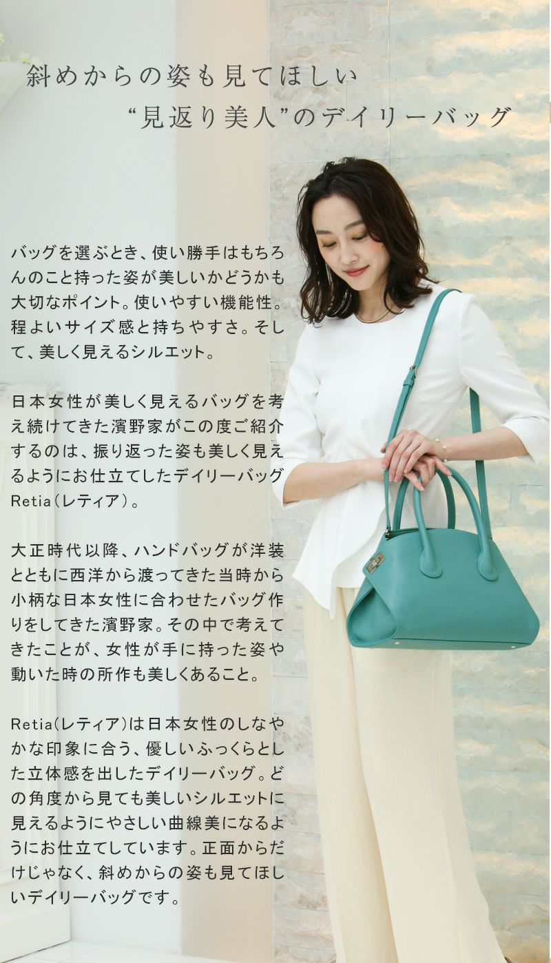 他の画像を見る 【傳濱野】街歩きも旅気分になる新カラー“見返り美人”デイリーバッグ Retia Chic Emerald (レティアシックエメラルド) 2way 斜めがけ 販売価格 ¥ 50,600 税込 在庫切れ